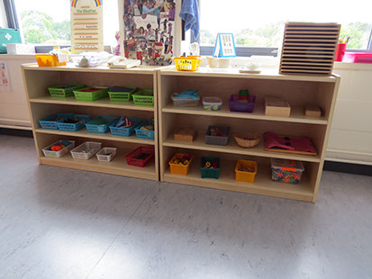 on low shelves and the children are given the freedom and responsibility of choosing their own work.