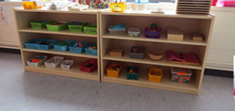 on low shelves and the children are given the freedom and responsibility of choosing their own work.